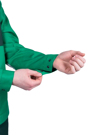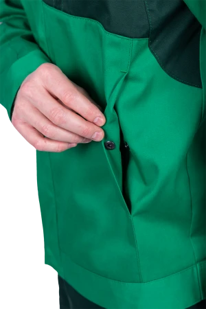 • рукава с локтевыми швами, с манжетами с застёжкой на кнопку с возможностью регулирования объема