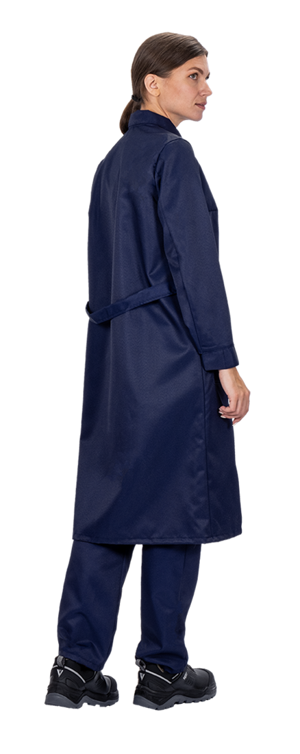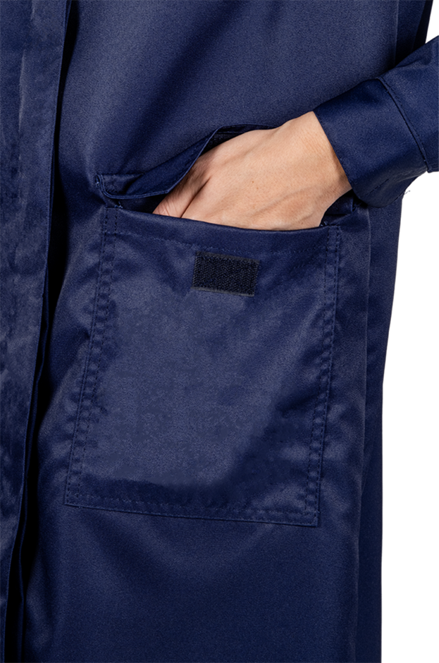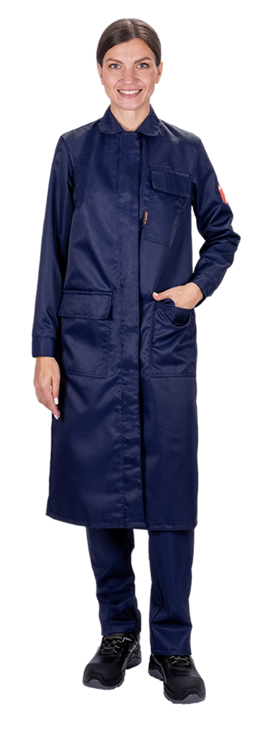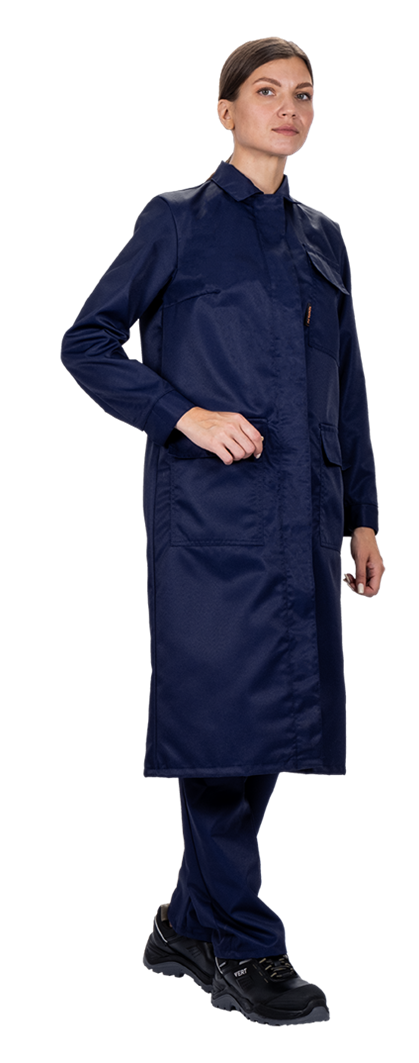 Комплект женский от растворов кислот и щелочей, механических воздействий, (халат, брюки), темно-синий