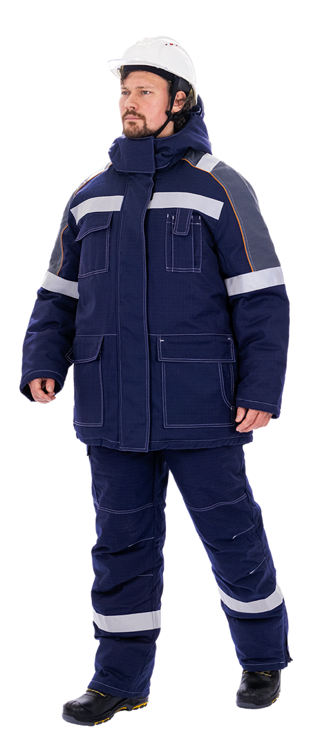 Костюм мужской МЕГАСТАТОЙЛ зимний от нефтепродуктов, кратковременного воздействия пламени, статического электричества, темно-синий/серый/оранж