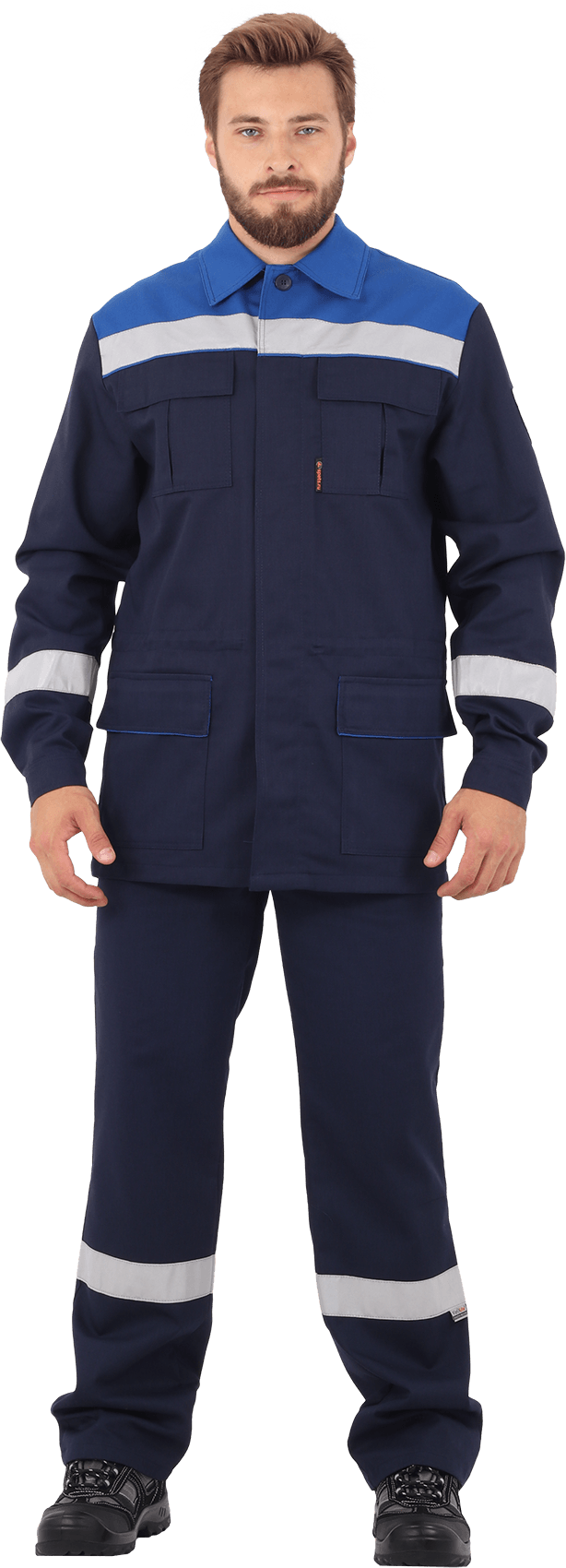 Купить Костюм мужской АНТИСТАТ от механических воздействий и ОПЗ, от статического электричества (куртка, полукомбинезон), темно-синий/василёк вы можете в компании СнабТим, оформив заказ в интернет магазине, или