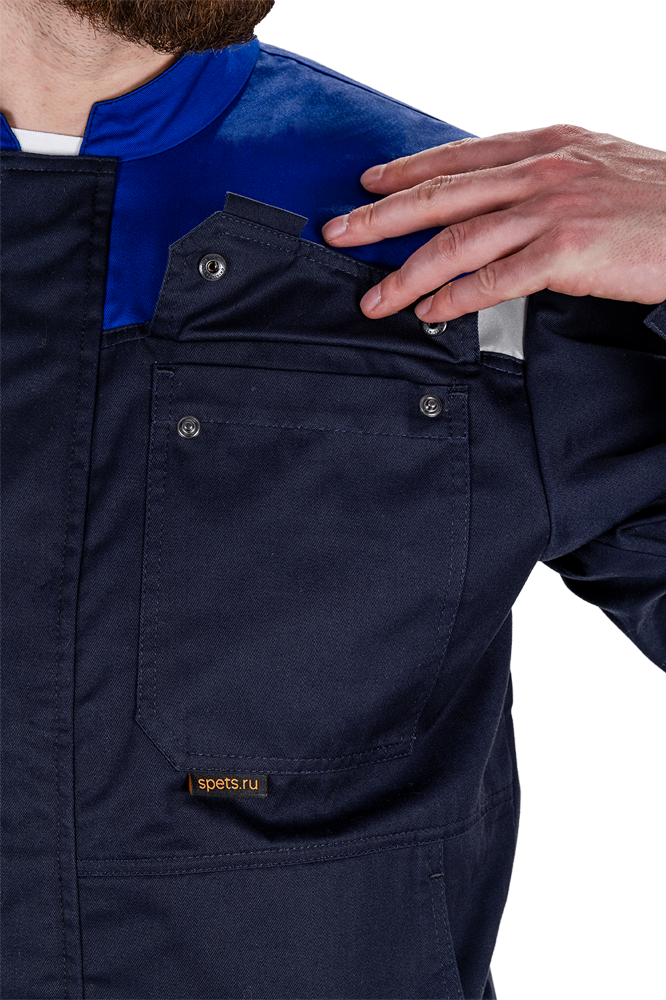 Костюм мужской КМ-10 ЛЮКС АНТИСТАТ летний для защиты от механических воздействий, статического электричества и ОПЗ (куртка, полукомбинезон), т.синий-василек