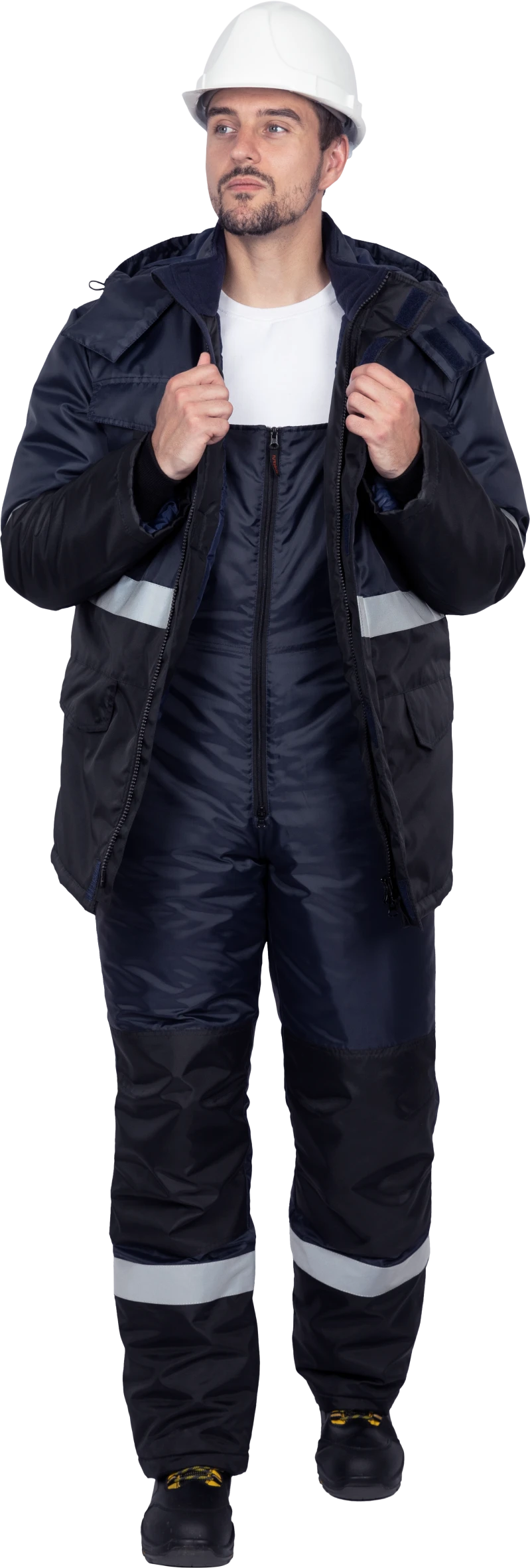 Утеплитель: полотно нетканое термоскрепленное, пл. 120 г/м² (куртка – 3 слоя, полукомбинезон – 2 слоя)