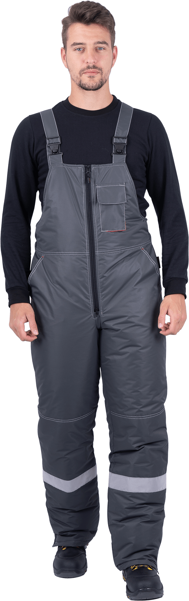В костюме используется световозвращающая полоса (СВП) 50 мм.