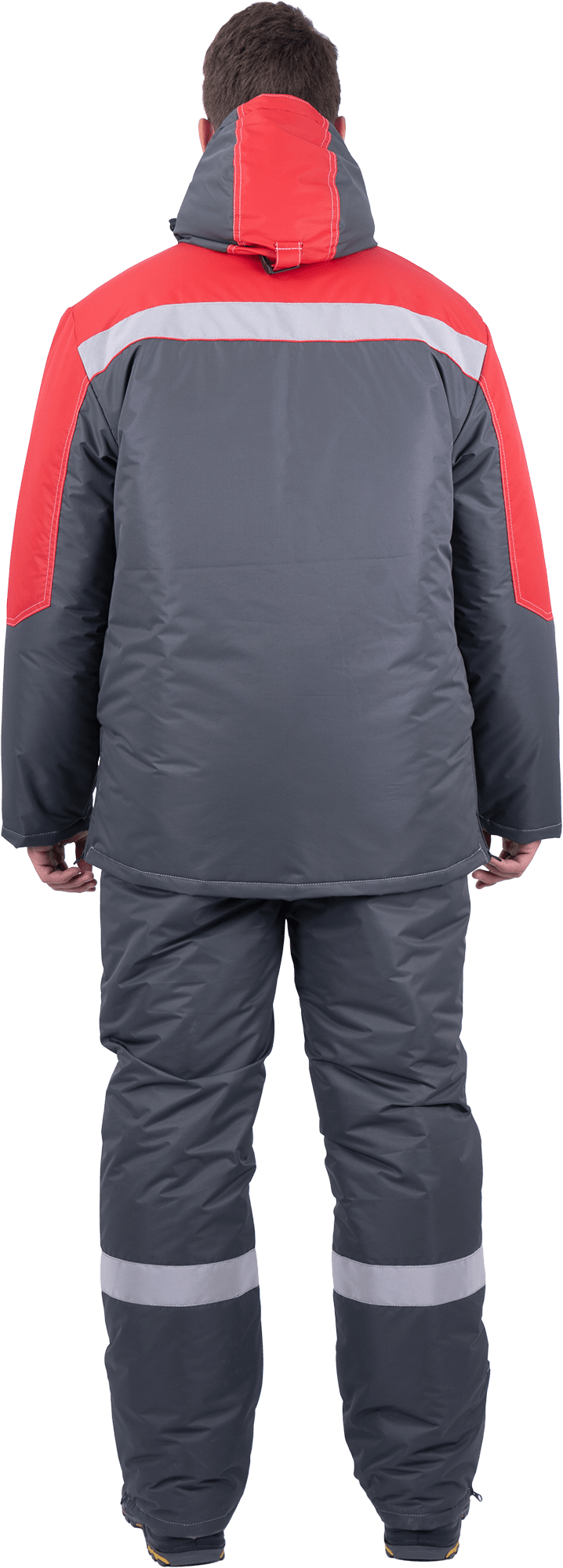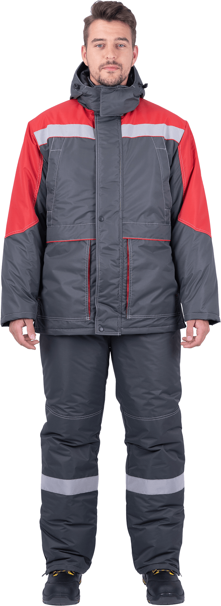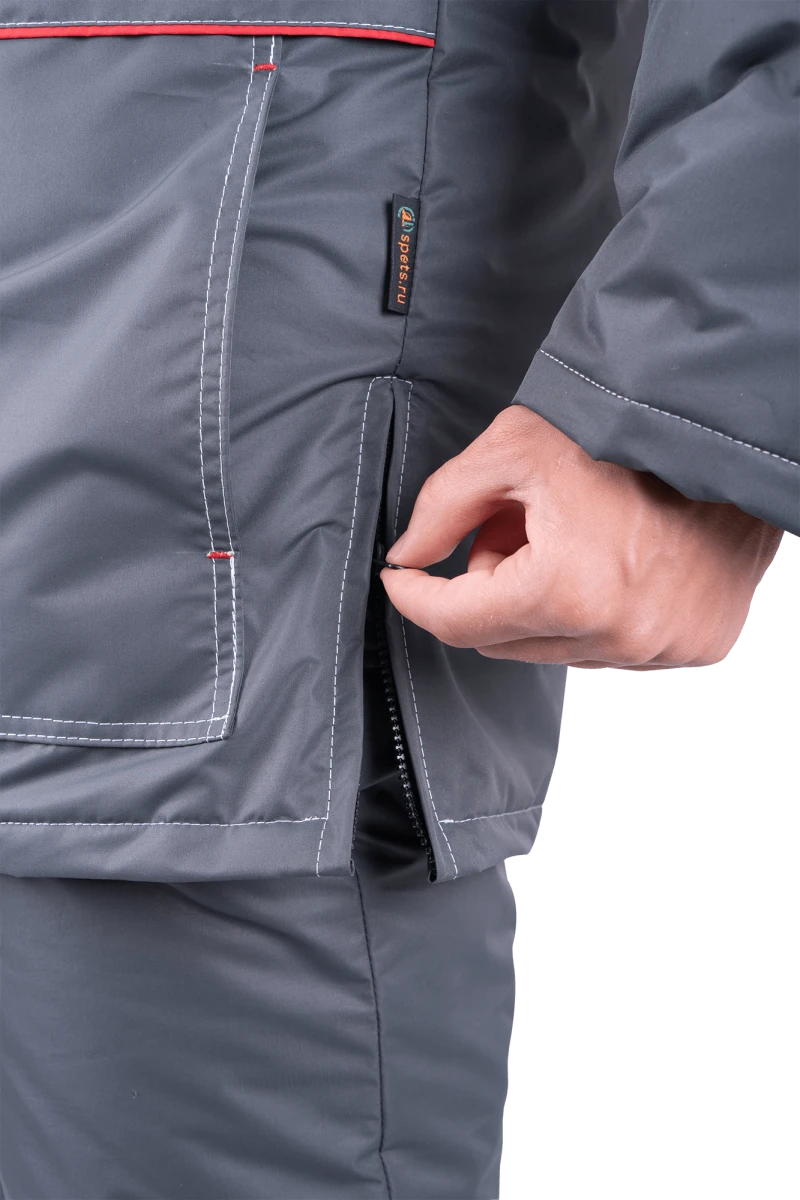 Костюм мужской ЕНИСЕЙ от пониженных температур воздуха и ветра, механических воздействий и ОПЗ (куртка, полукомбинезон), серый/красный