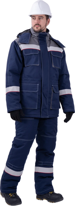 Костюм мужской НАДЫМ от пониженных температур воздуха и ветра, механических воздействий и ОПЗ (куртка, полукомбинезон), темно-синий/серый