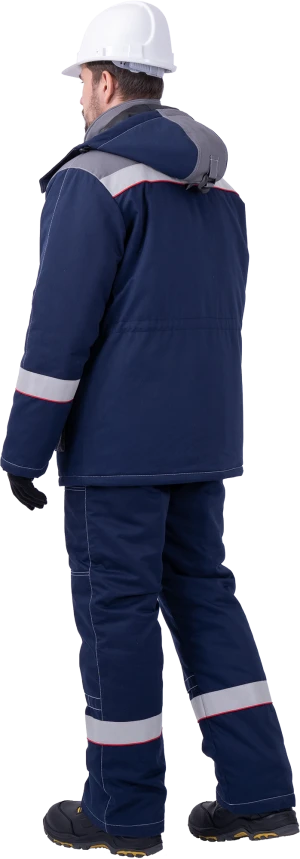 Костюм мужской НАДЫМ от пониженных температур воздуха и ветра, механических воздействий и ОПЗ (куртка, полукомбинезон), темно-синий/серый