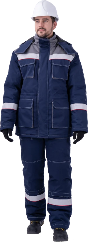 Костюм мужской НАДЫМ от пониженных температур воздуха и ветра, механических воздействий и ОПЗ (куртка, полукомбинезон), темно-синий/серый