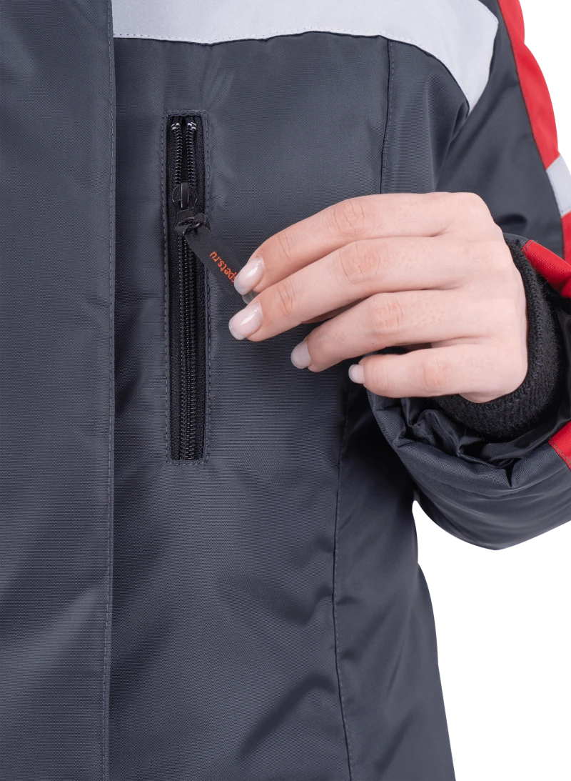 Купить Костюм РОУД зимний, т/серый-красный, женский вы можете в компании СнабТим, оформив заказ в интернет магазине, или