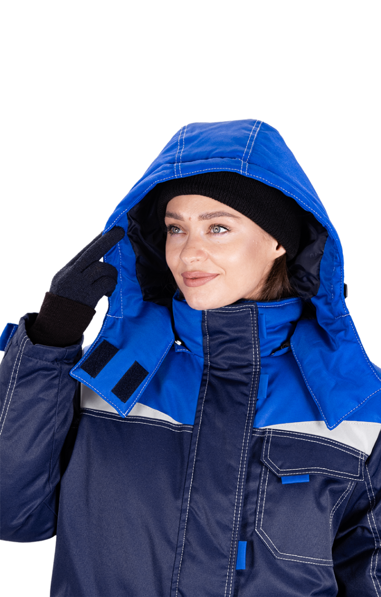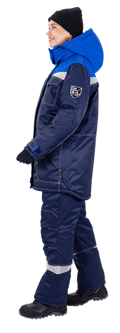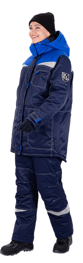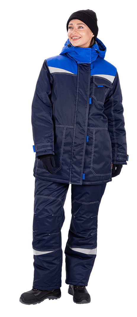 Костюм женский КМ-10 ЛЮКС от пониженных температур воздуха и ветра, механических воздействий и ОПЗ (куртка, брюки), синий/василек