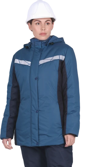 • съёмный утеплённый капюшон на кнопках с эластичным шнуром по лицевому вырезу