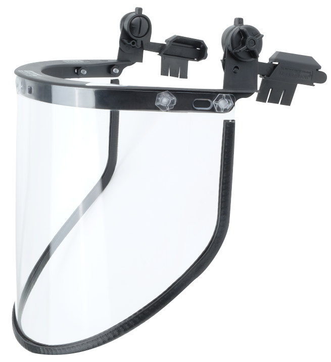 • крепление щитка к защитной каске осуществляется за счет подъемно-фиксирующего устройства, устойчивого к износу и гарантирующего надёжную фиксацию лицевого щитка в двух положениях “вверх-вниз”.