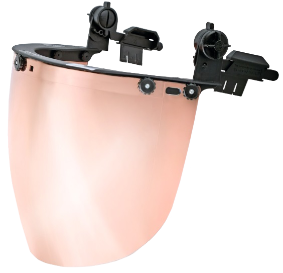 • крепление щитка к защитной каске осуществляется за счет подъемно-фиксирующего устройства, изготовленного из холодо- и термостойкого материала, устойчивого к износу и гарантирующего надёжную фиксацию лицевого щитка в двух положениях “вверх- вниз”; рекомендуе