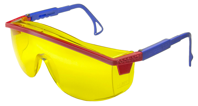 Очки легкие (масса - не более 35 г.), удобные, универсальные, с регулируемым углом наклона защитного панорамного стекла и регулируемой длиной заушников. Панорамное стекло - желтого цвета, градационный шифр 2-1,2 из оптически прозрачного материала Plexiglas CE обеспечивает защиту глаз при продолжительной работе (более 3 часов) с персональным компьютером, снижает утомление глаз, фильтрует нежелательное излучение (например, синий цвет), которое вызывает дискомфорт и напряжение глаз. Применяются как просветляющие очки при выполнении специальных работ на затемненных местах и для усиления контрастности. Оптический класс 1. Масса не более 35 г.