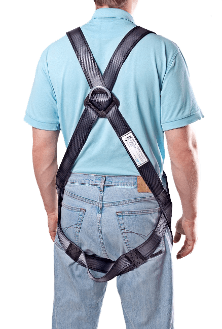 • Привязь оснащена двумя элементами крепления : элементом крепления на спине и анкерной петлёй на груди.