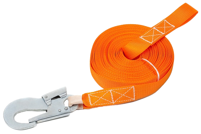 Строп спасательный ленточный с карабином используется для удлинения фала пояса предохранительного лямочного и, совместно с этим поясом, предназначен для страховки и экстренной эвакуации человека, работающего в траншеях, колодцах, ёмкостях и др. замкнутых пространствах.