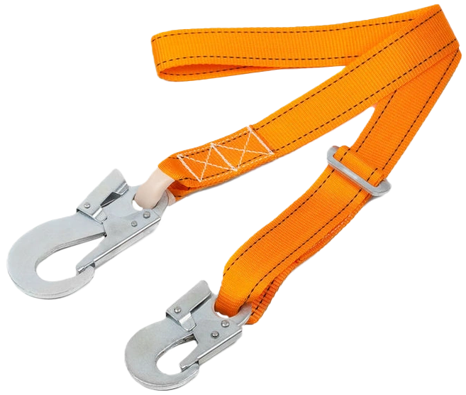 Строп ленточный регулируемый с двумя карабинами используется как средство индивидуальной защиты от падения с высоты, может применяться как отдельная соединительная деталь, узел или компонент в системе с привязями и с анкерной точкой, дополнительно снабжён регулируемой пряжкой, позволяющей удлинить или укоротить строп.