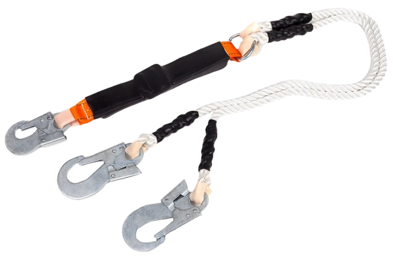 Строп из полиамидного каната ф13 мм с амортизатором и двумя карабинами используется как средство индивидуальной защиты от падения с высоты, может применяться как отдельная соединительная деталь, узел или компонент в системе с привязями и с анкерной точкой.