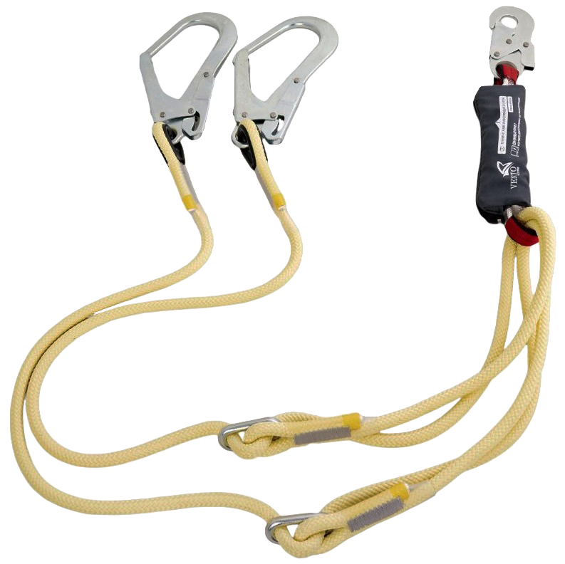 Двухплечевая конструкция удобна при перемещении по металлоконструкциям для обеспечения беспрерывной страховки. Регулировка позволяет изменять длину стропа в зависимости от расстояния между анкерной точкой и опасной зоной.